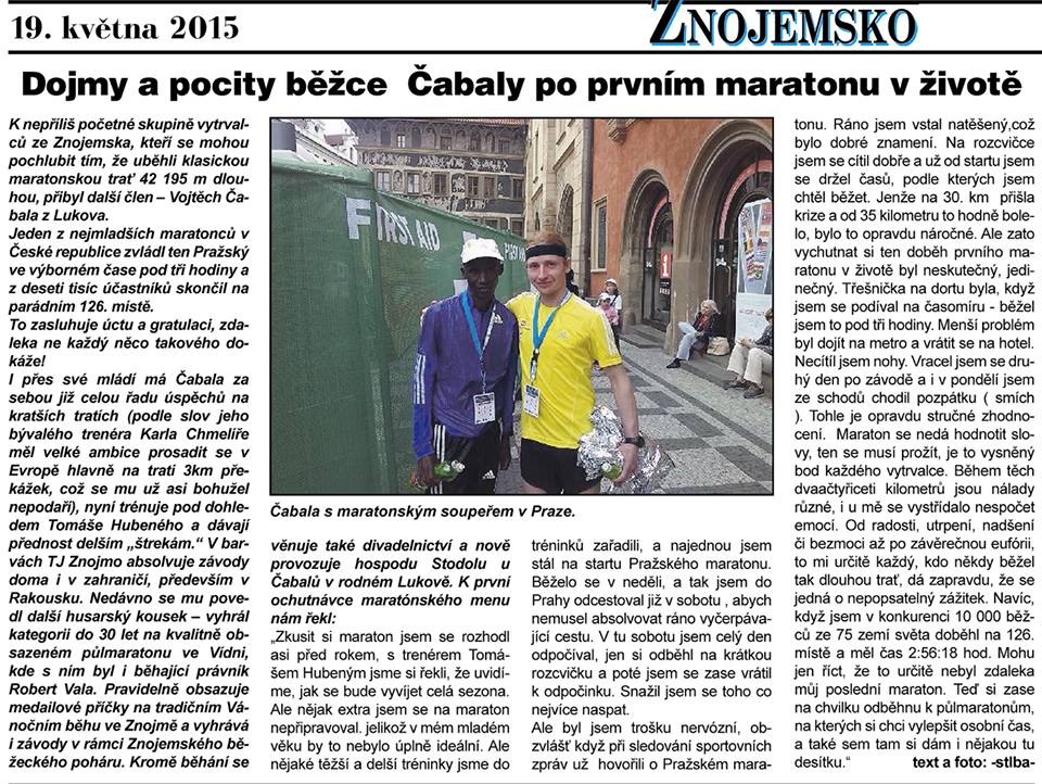 2015-05-19 Dojmy a pocity běžce Čabaly po prvním maratonu...